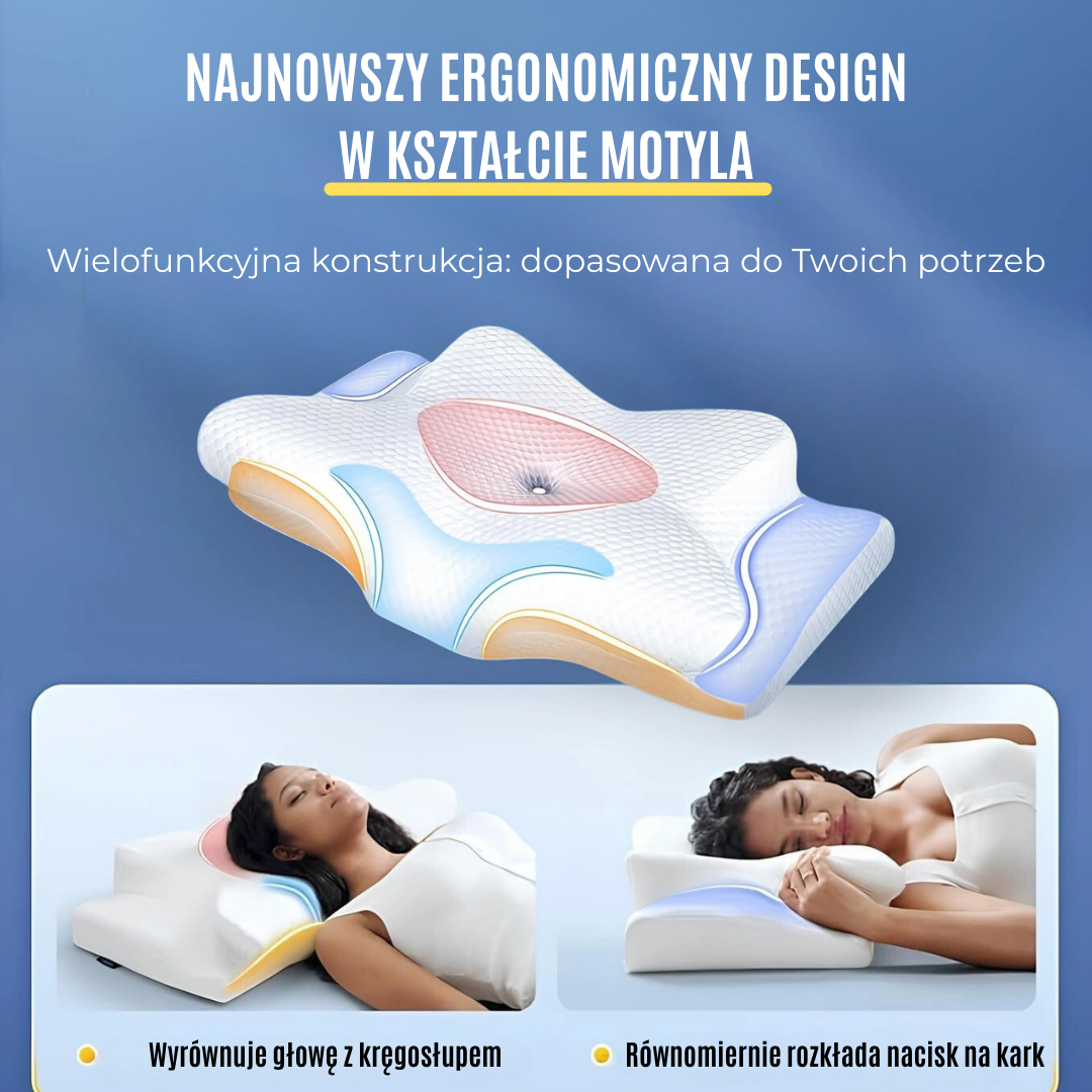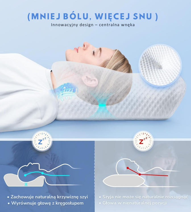 Tak, poduszka wspiera naturalną krzywiznę szyi, co pomaga zmniejszać napięcia i wspiera rehabilitację kręgosłupa szyjnego.